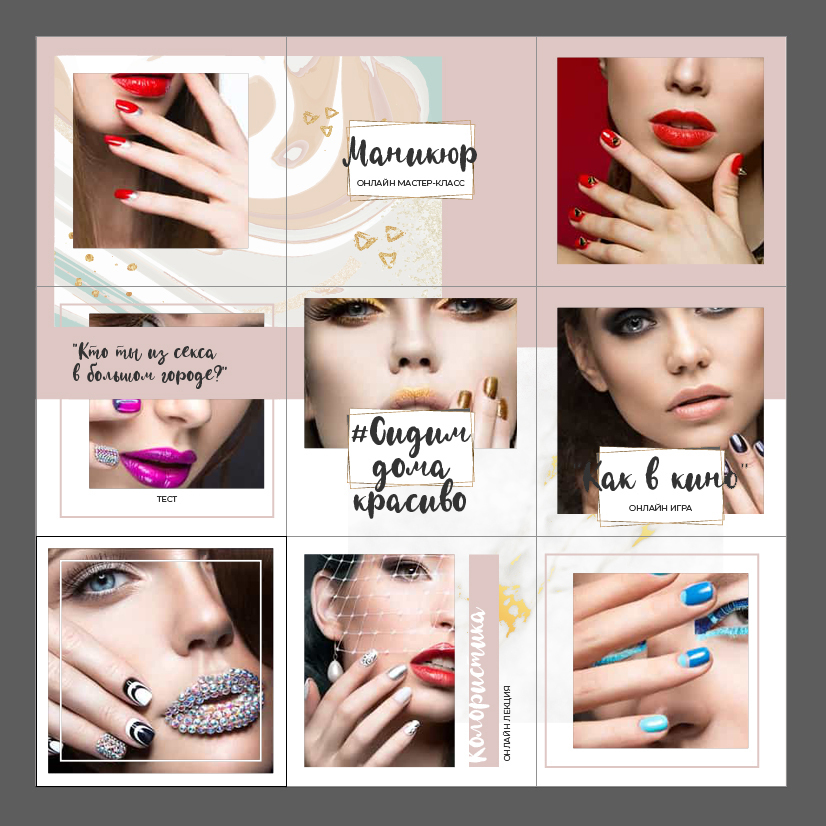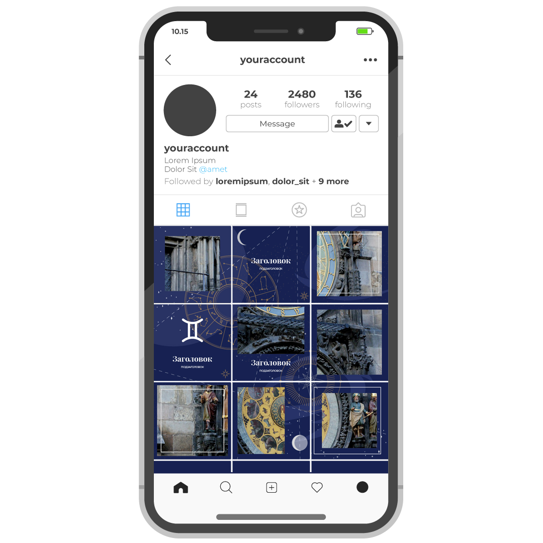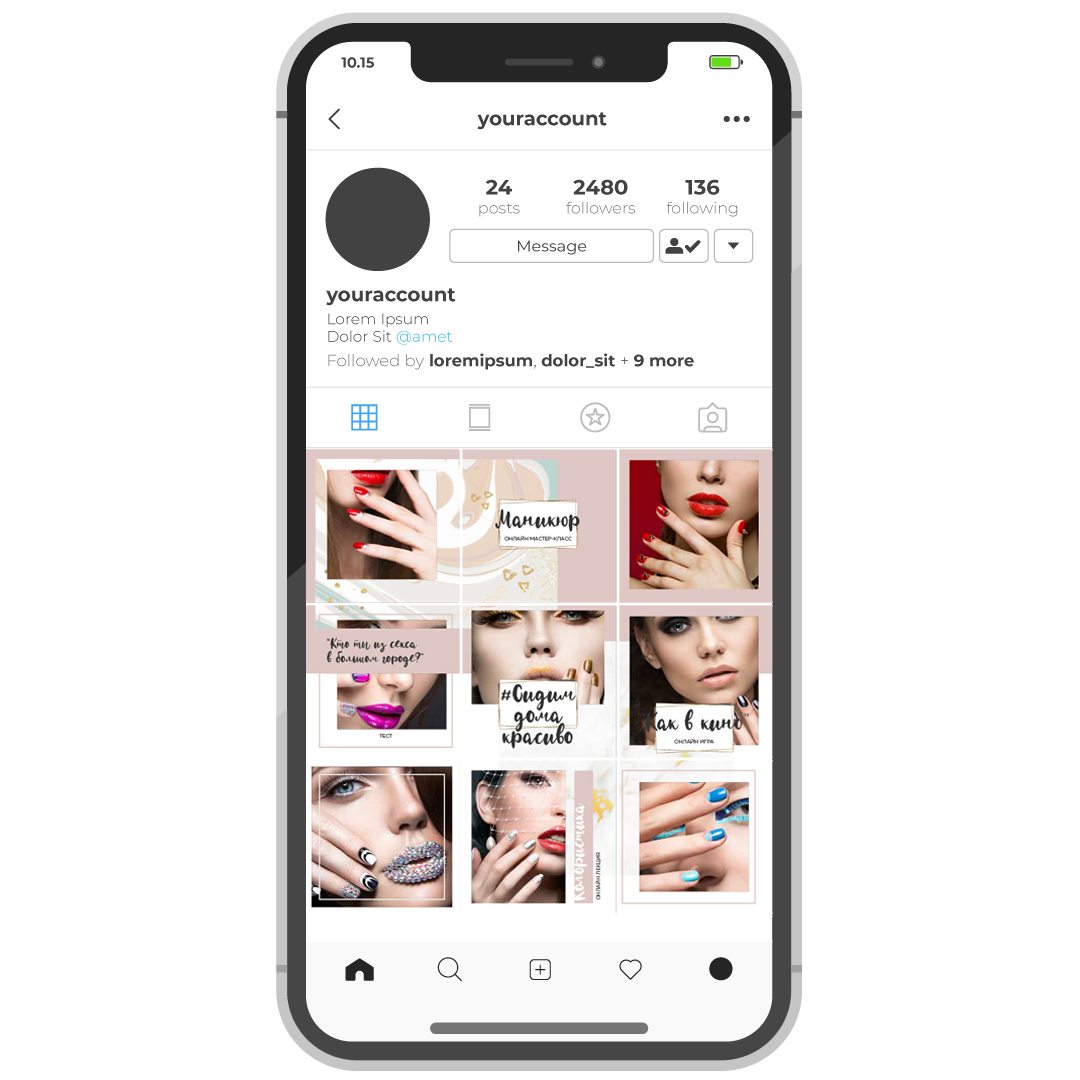 меняйте цвета, вставляйте свои фото, миксуйте посты по своему желанию и создавайте уникальный, яркий и продающий аккаунт